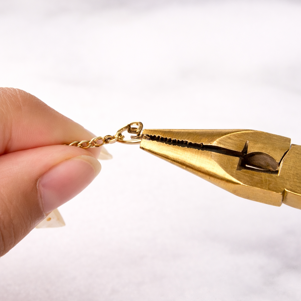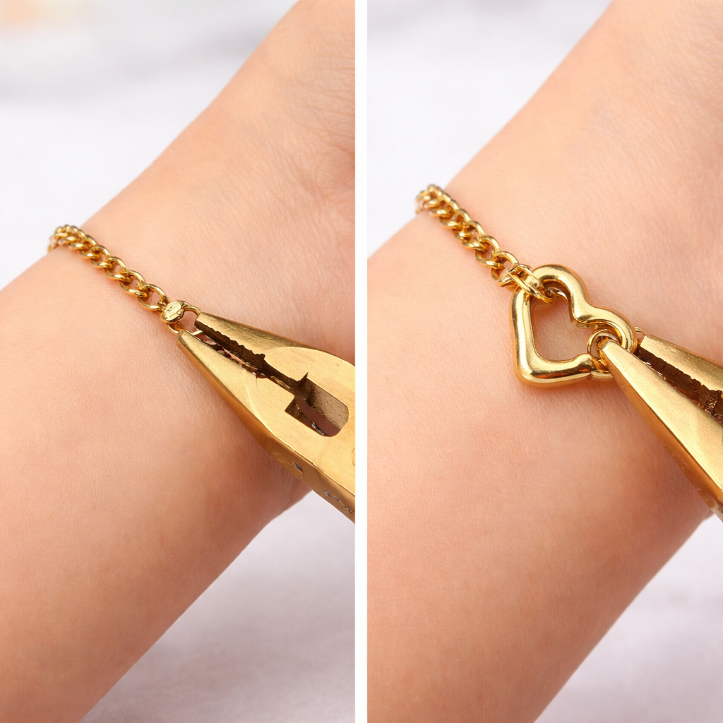 Measure the length till it comfortably fits around your wrist, and cute off the excess with the pliers.